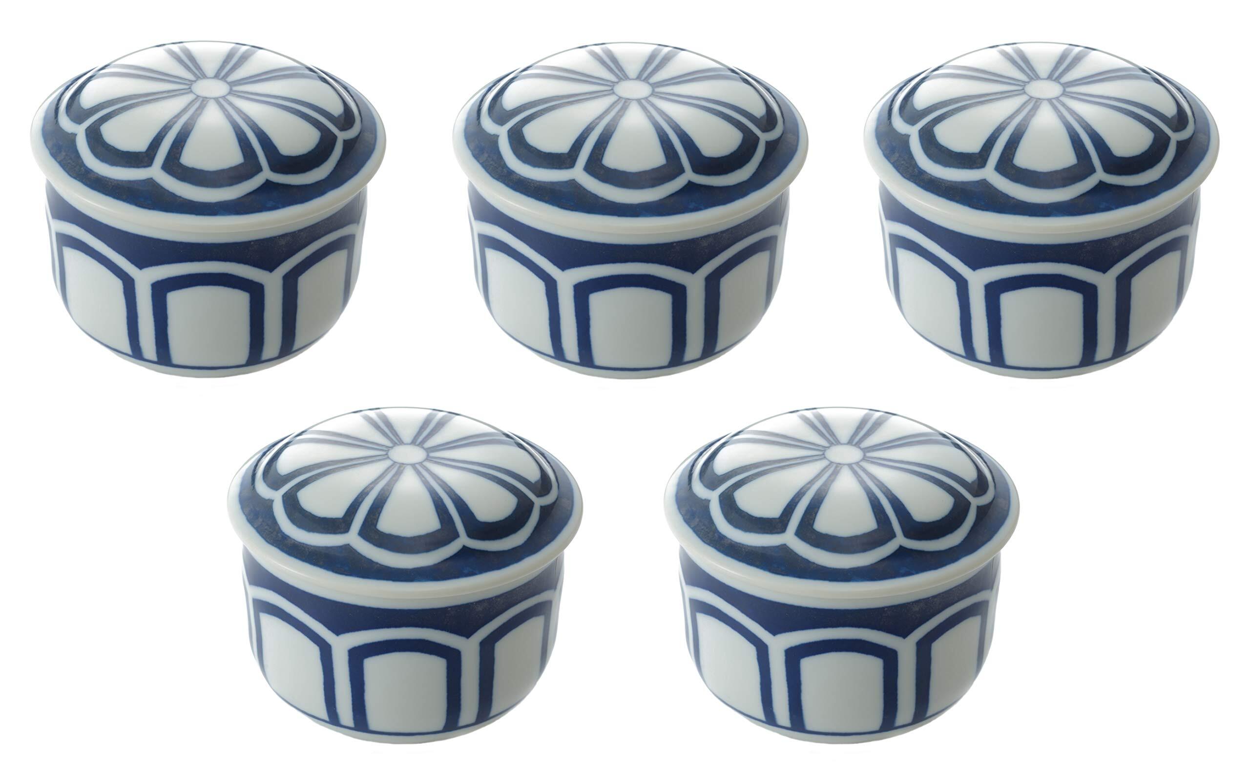 西海陶器(Saikaitoki) 鉢 中鉢 茶碗蒸し 茶碗蒸し碗 蓋付 大きめ おもてなし 保存容器 漬物 梅干し 美濃焼 菊割蓋物(5個組) 容量/約275ml