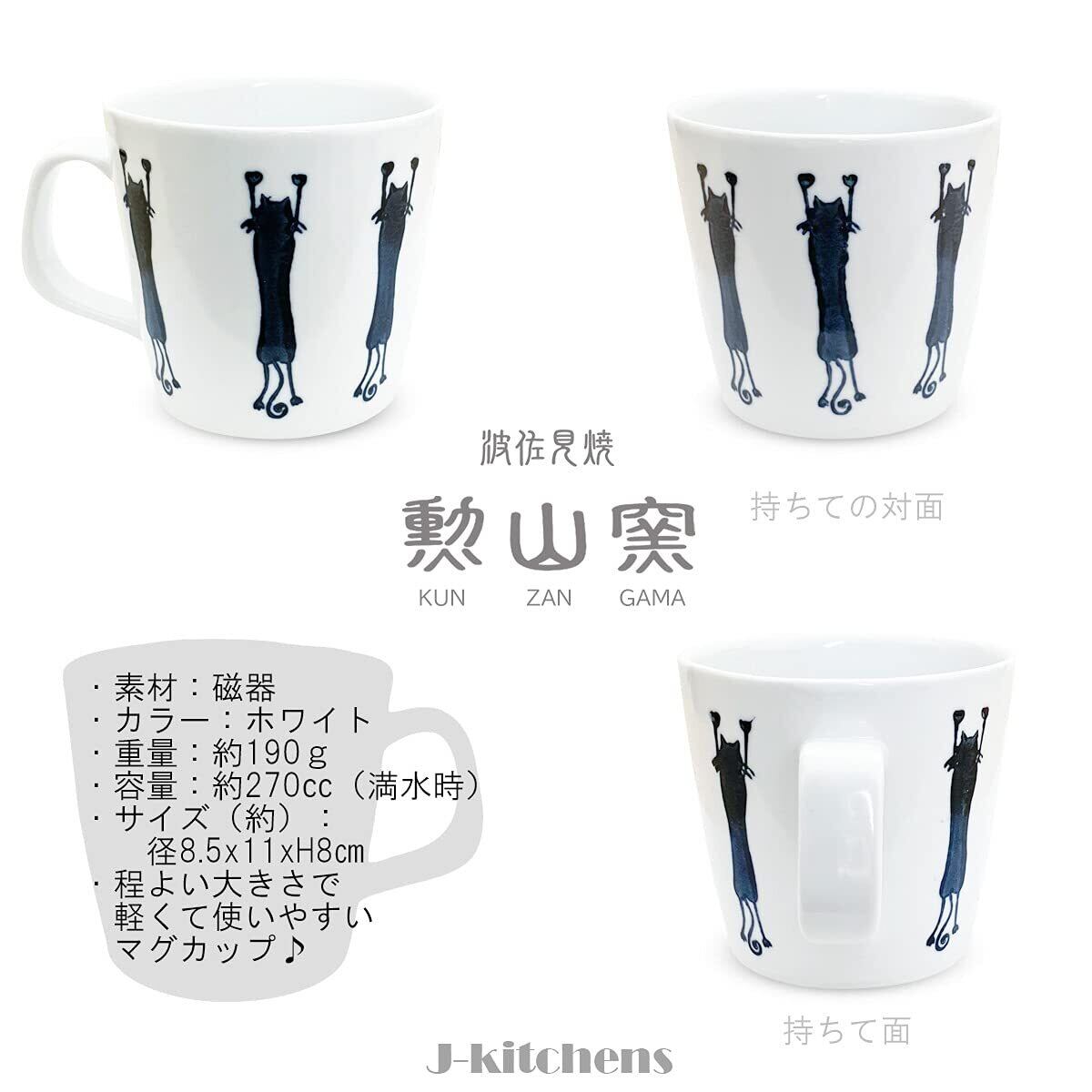勲山窯 母の日 プレゼント 茶碗 11.5cm マグカップ 270ml セット 波佐見焼 日本製 J-kitchens 背伸び ねこ ブルー