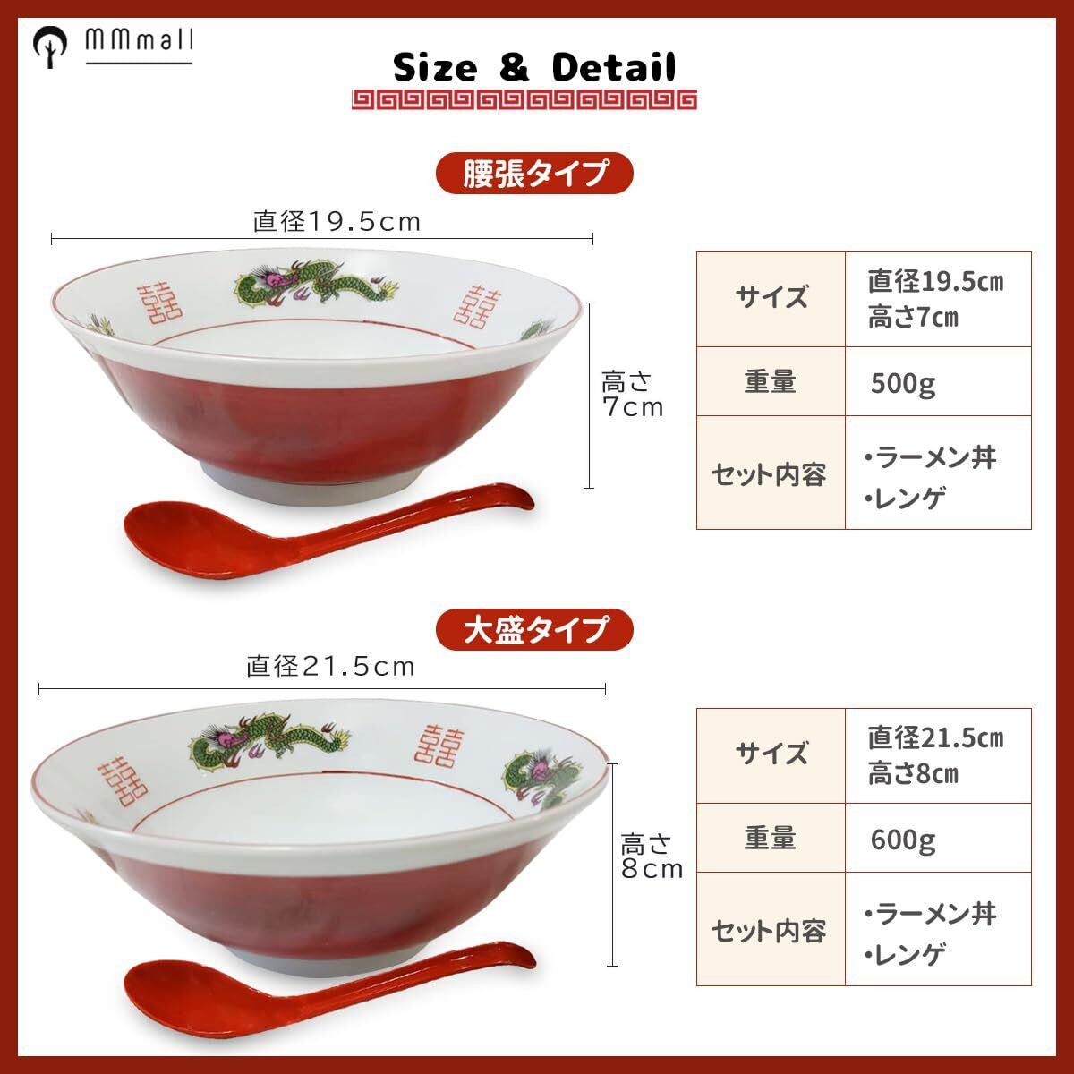 MMmall ラーメン丼 ラーメンどんぶり The 中華そば の器 底に沈まないロングレンゲ付き 1100ml(腰張, 並盛り単品)