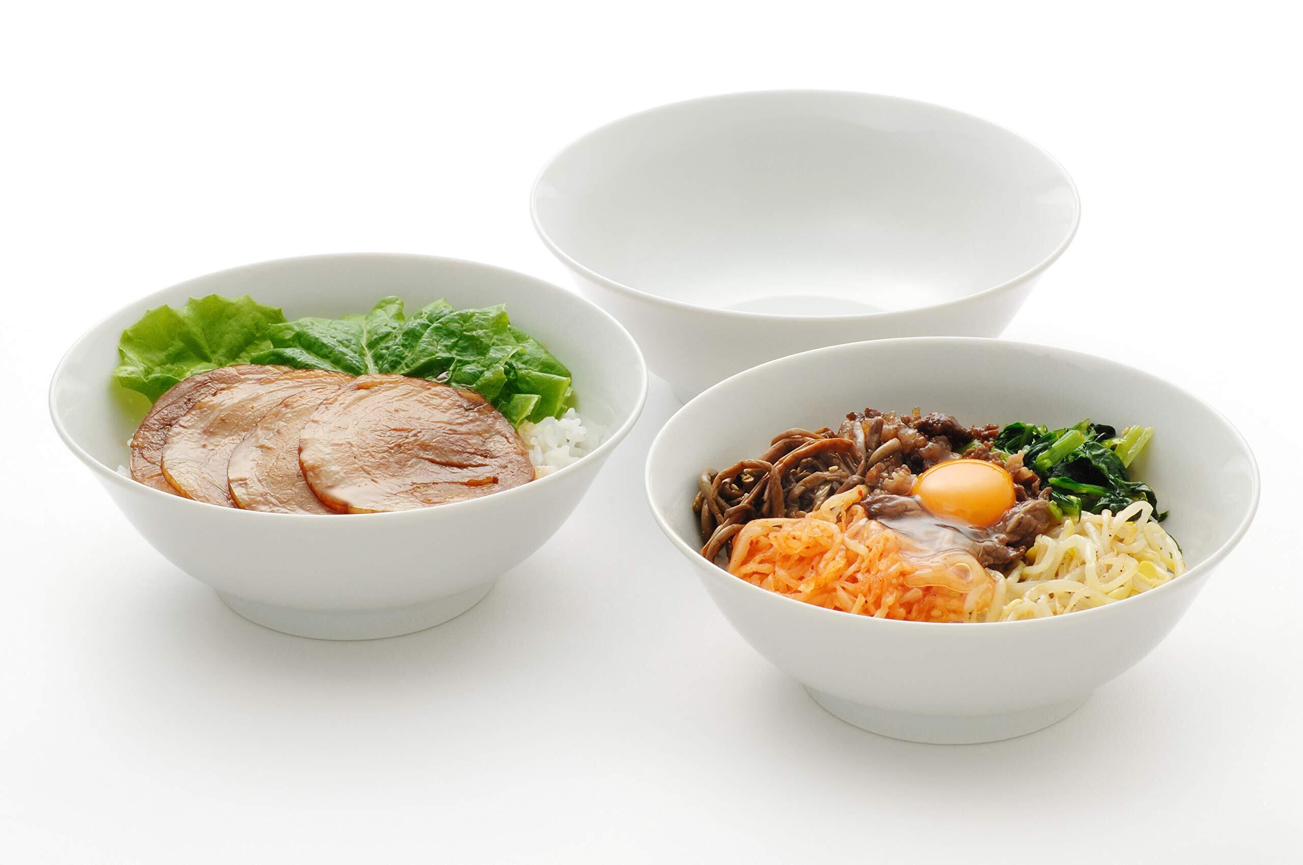 白のラーメン丼は、しょうゆ・みそ・とんこつと何にでも合います。ラーメン以外にも親子丼やカツ丼、ビビンバ等、多用途につかえます。渕が反り型形状で食べやすいです。丼以外は商品ではありません。