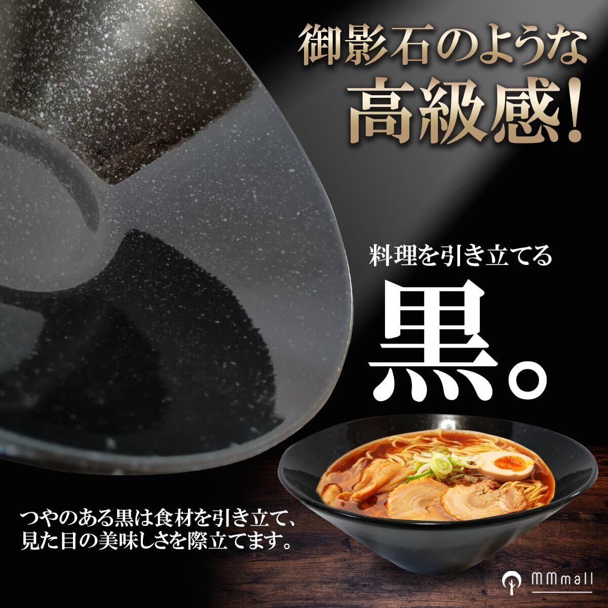 【御影石のような高級感!】料理を引き立てる黒。つやのある黒は食材を引き立て、見た目の美味しさを際立てます。ラーメン鉢のようでラーメン鉢でない使用用途のお使いいただけます。【シンプルかつスタイリッシュ‼】様々なシーンでお洒落な食事の空間を演出します。器の下の足の出っ張りがないので綺麗に重ねて収納スペースをとることがありません。