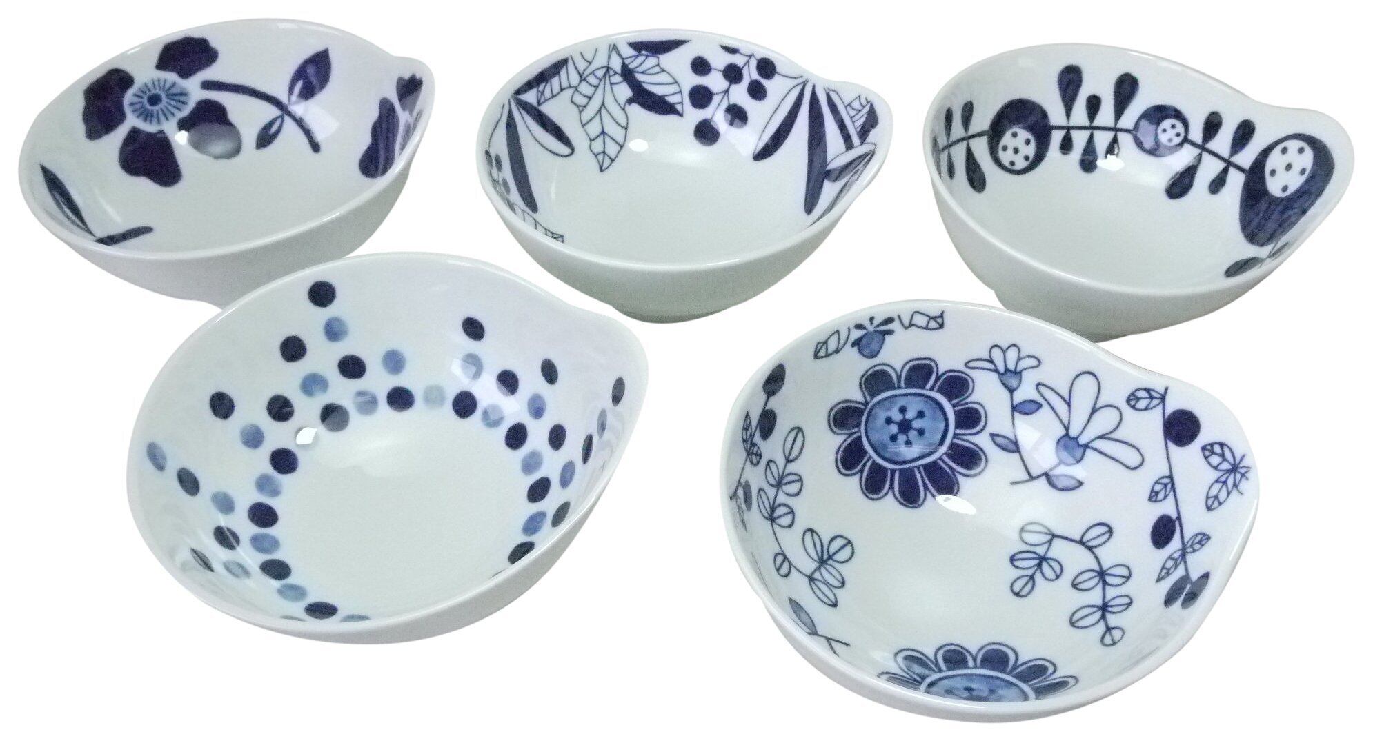 西日本陶器 食器 器 ボウル 中鉢 とんすい 5個 セット 有田焼 持ちやすい絵変りボウル 5柄組 白/紺色 約径13.5×最大幅14.3×高7.3㎝ 20327287