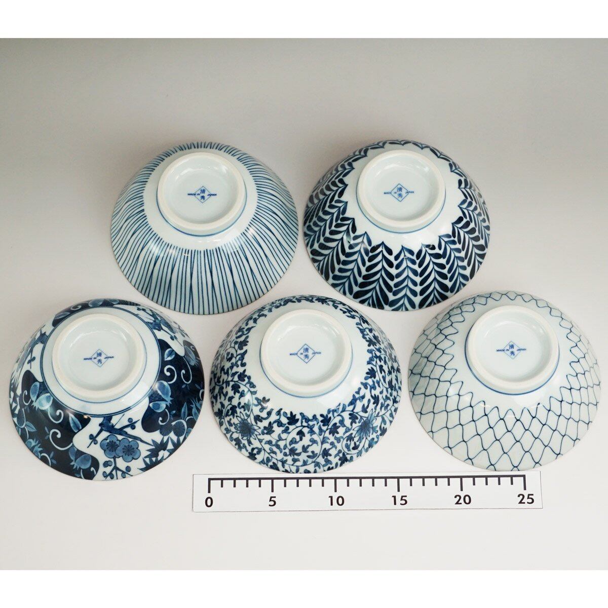 西海陶器 多用 鉢 藍 絵変り 化粧箱入 日本製 直径 15.5 cm 5個 セット 31303