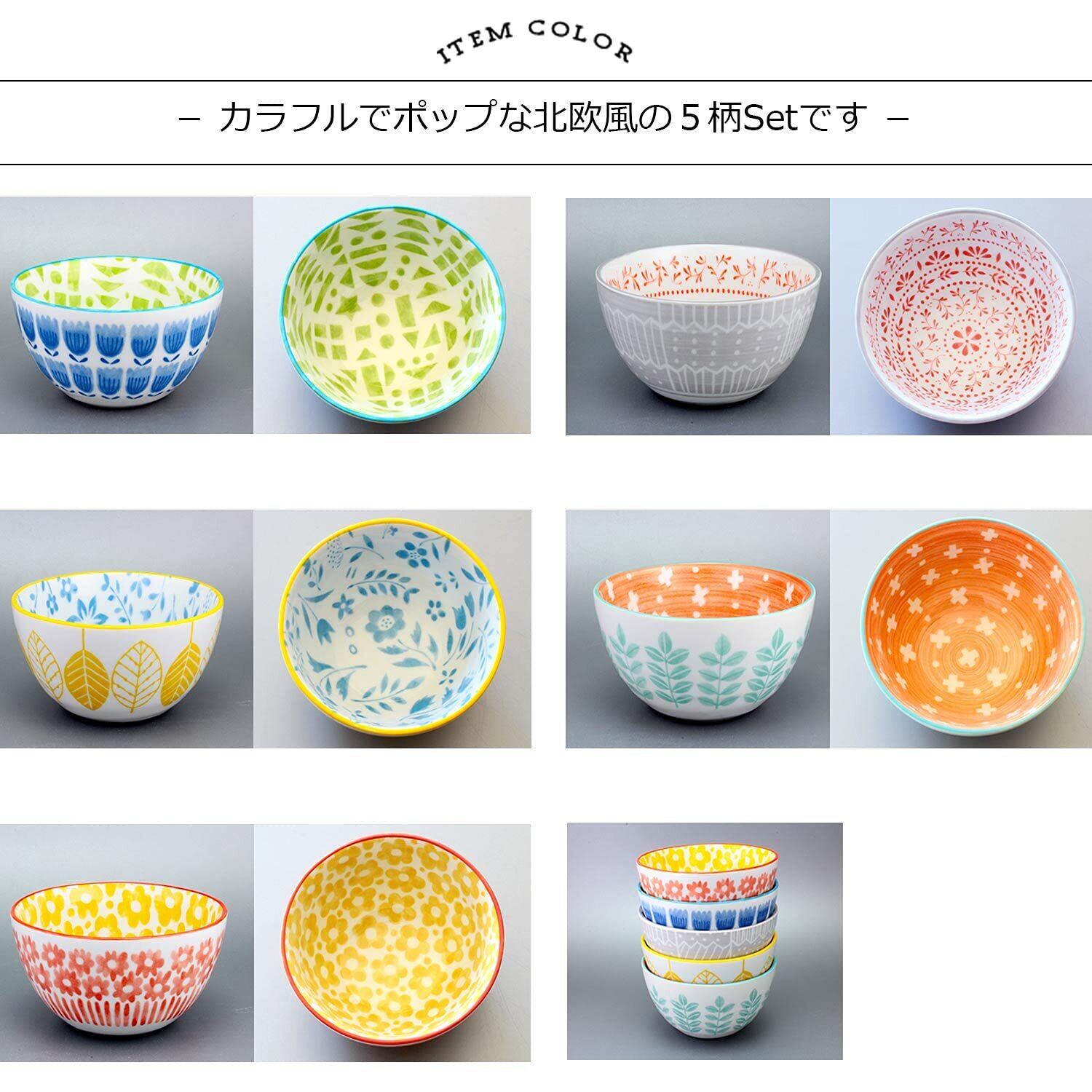 \【◆暮らしの彩り ボウル 美濃焼 北欧フラワー 5柄セット 日本製 径12.5cm 480ml: おしゃれで実用的な食卓アイテム!】/