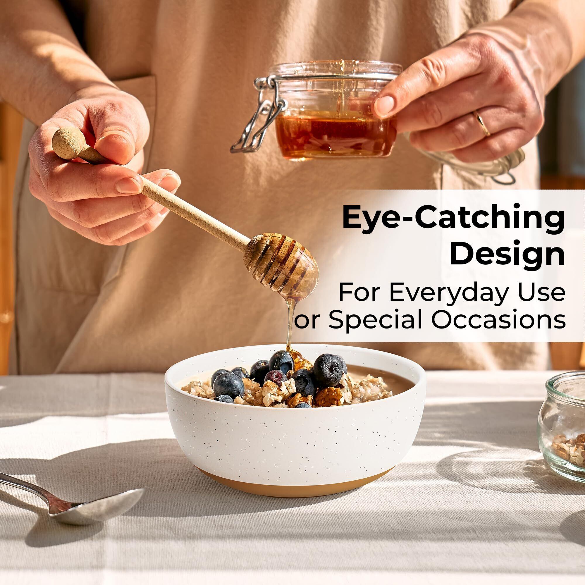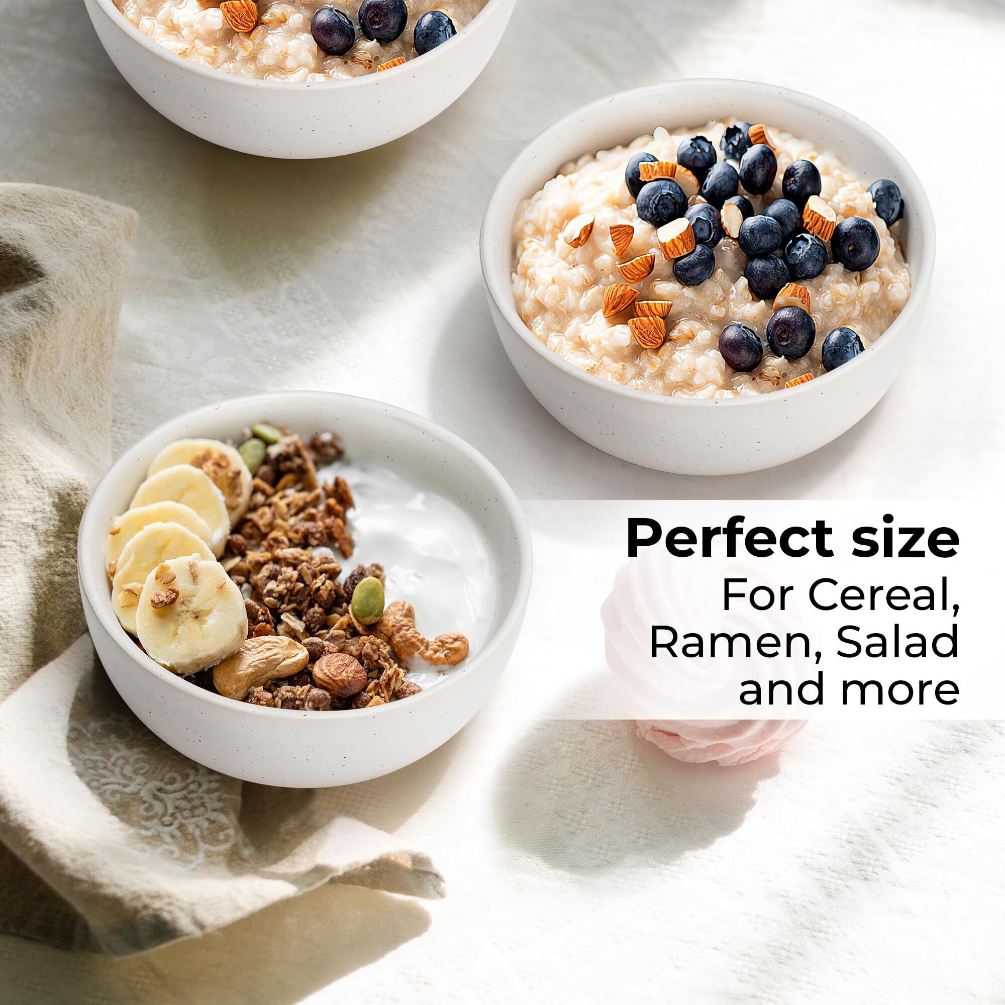 たっぷり容量 - 820mlのシリアルボウル4個セットをご紹介します。キッチンにぴったりの便利なアイテムです!直径16cm、高さ7cmのセラミックボウルは、お気に入りの料理を存分に楽しめる十分なスペースを提供します。