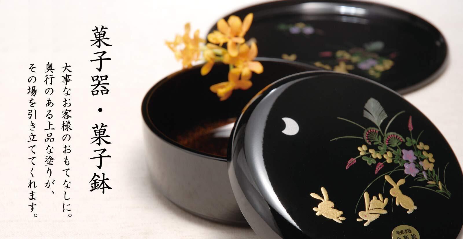 大事なお客様のおもてなしに。奥行のある上品な塗りが、その場を引き立ててくれます。こちらの菓子鉢・菓子器は紀州漆器の里、和歌山県海南市で作られています。職人たちが手作業で塗装しています。ひとつひとつに個性が生まれ、同じ仕上がりのものはなく、少しずつ表情が異なります。普段使いはもちろんの事、来客時の菓子入れにぴったりの逸品です。