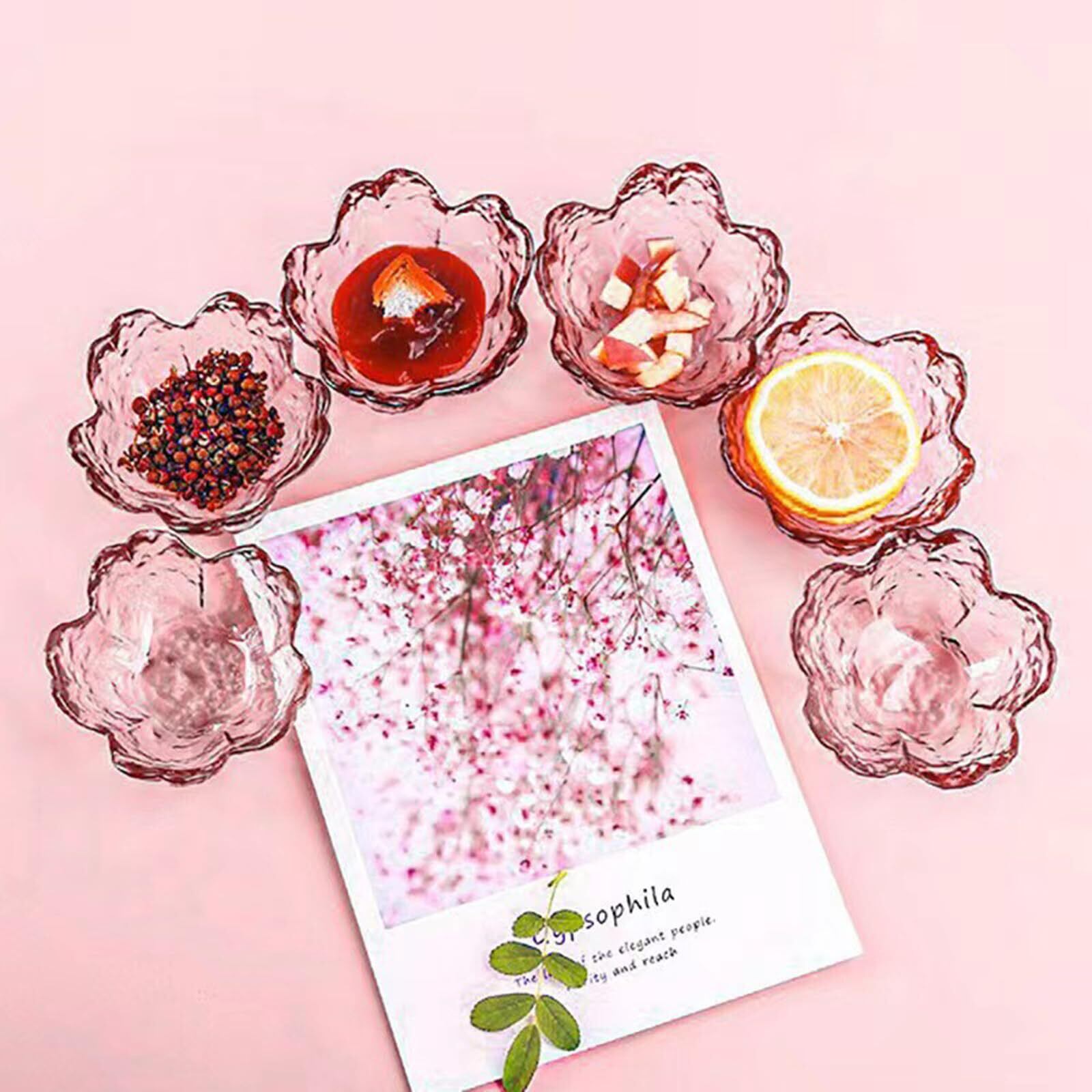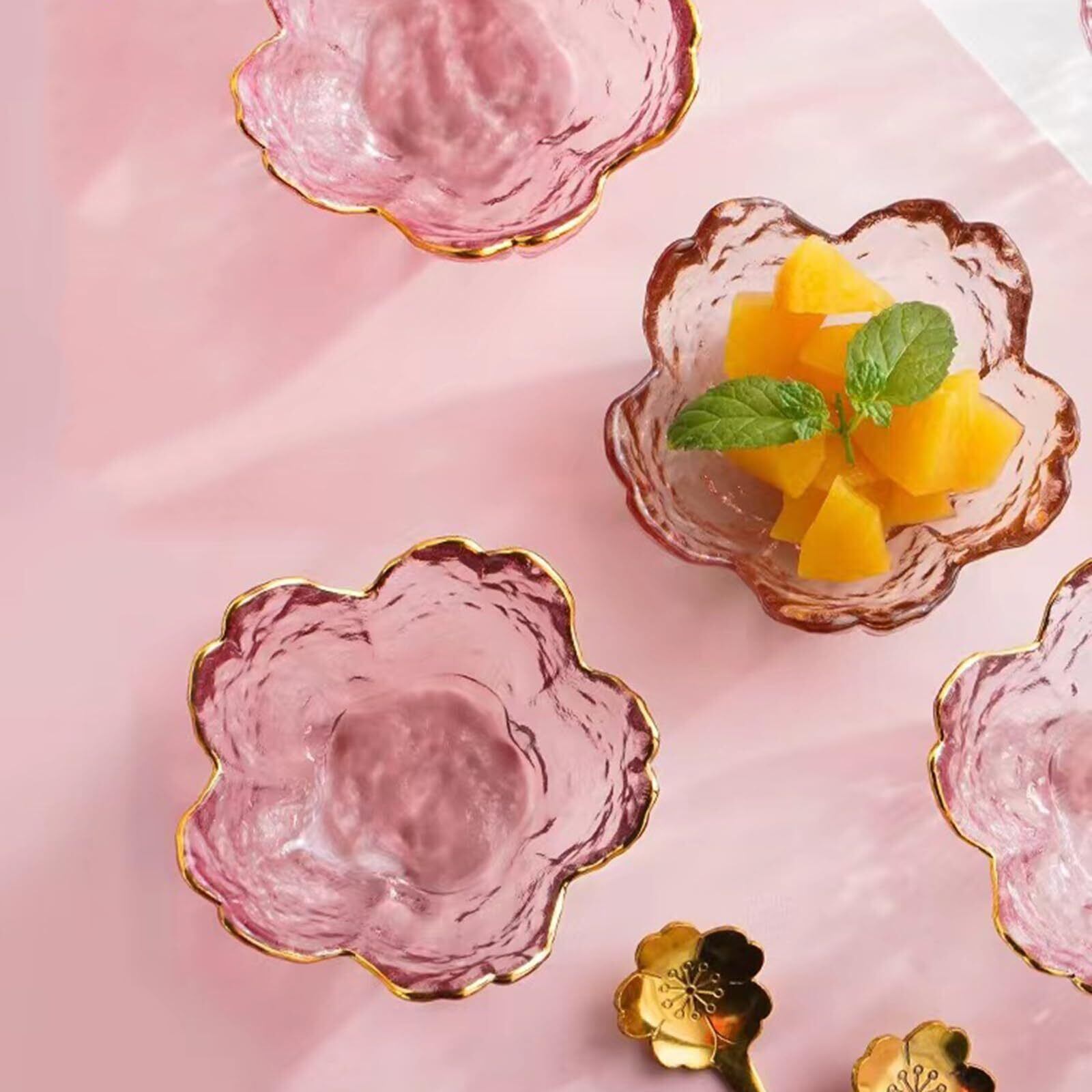 6個セット桜 ガラス ボウル デザート アイスクリーム さな ディップ ソース プレート小鉢(ピンク)