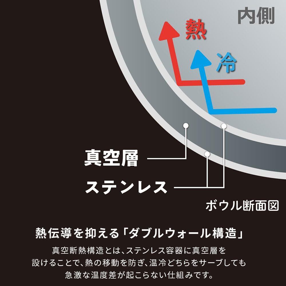 **特別な構造により、結露が発生しにくく、置いた場所を濡らす心配がありません!** また、器の外側が熱くなりづらいため、安心してお使いいただけます。
