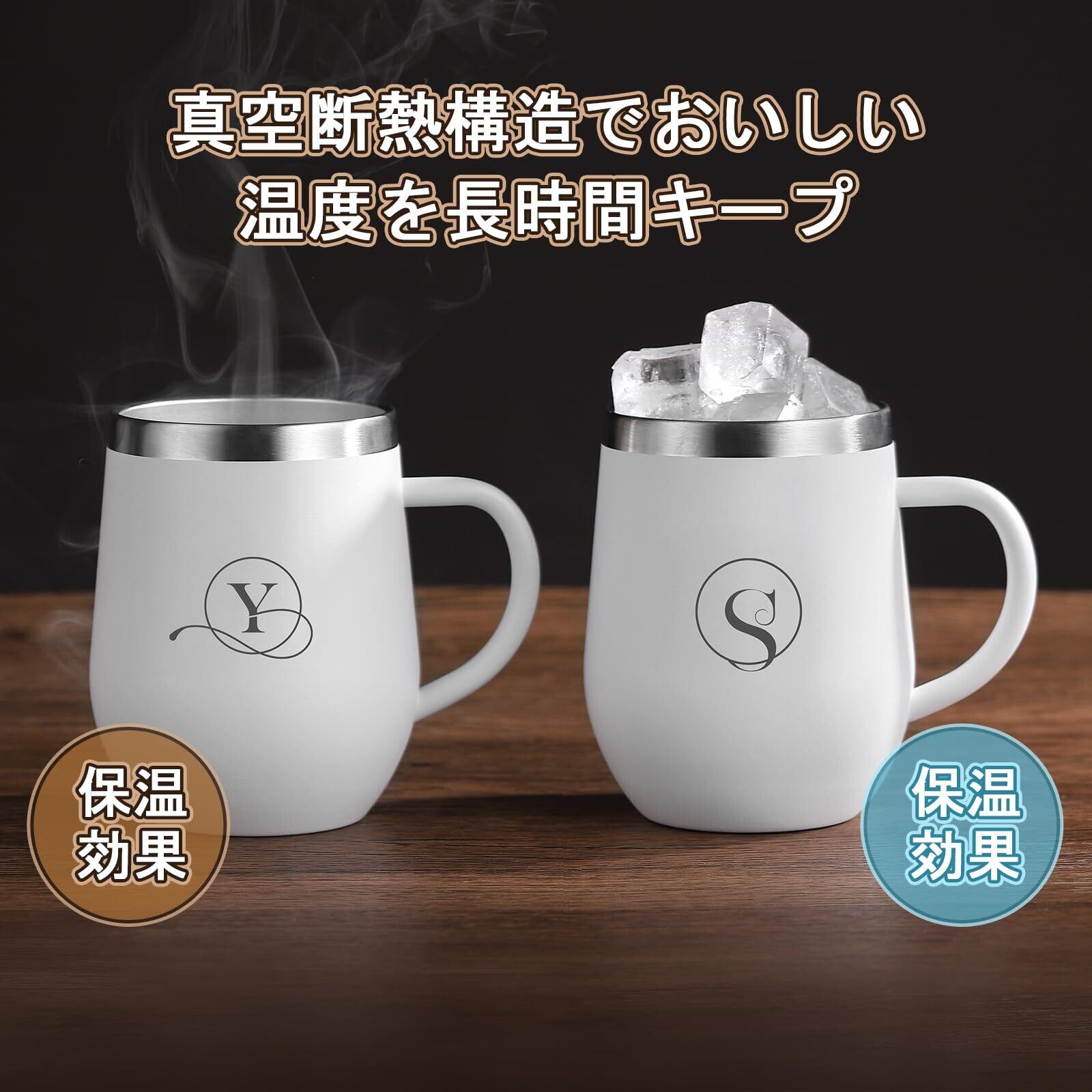 名前 イニシャル入り 誕生日プレゼント 取っ手付きタンブラー 女性 男性 ギフト ステンレス製 コーヒマグカップ 蓋付き 保温保冷 350ml 化粧箱入り 母の日 父の日 恋人 姉妹 友達 上司 父親 母親 プレゼント 就職 退職 還暦 記念日 クリスマス (M, ホワイト)