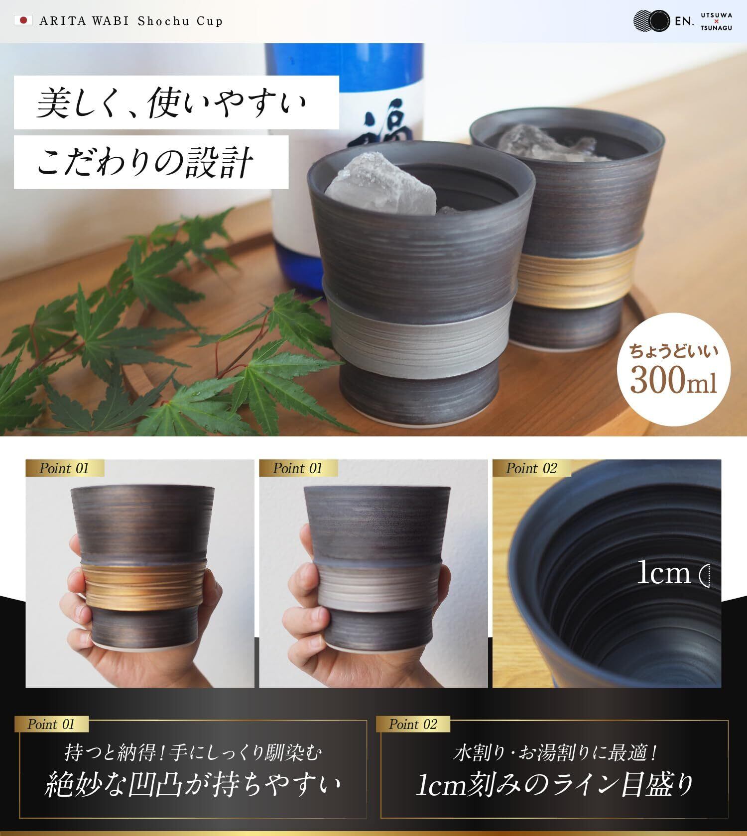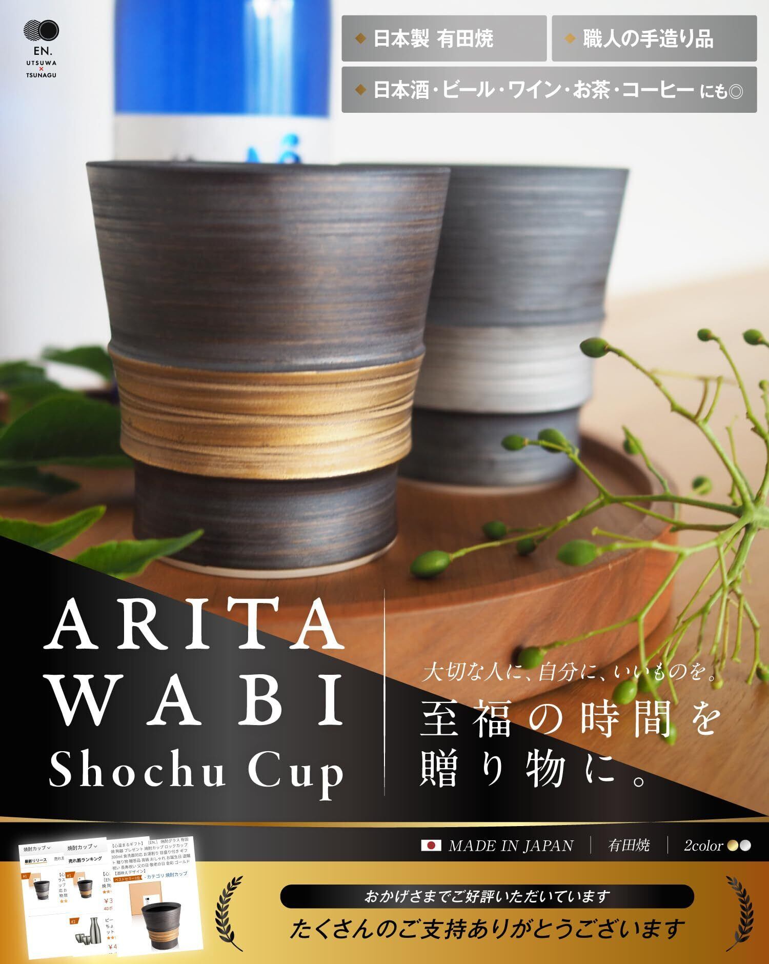 \【◆心温まるギフト [EN.] 焼酎グラス 有田焼 陶器 プレゼント 焼酎カップ ロックカップ 300ml 食洗器対応 お湯割り 目盛り付き ギフト 贈り物 贈答品 高級 おしゃれ お誕生日 退職祝い 長寿祝い 父の日 敬老の日 金彩 ゴールド: 焼酎を楽しむための特別な陶器グラス!】/