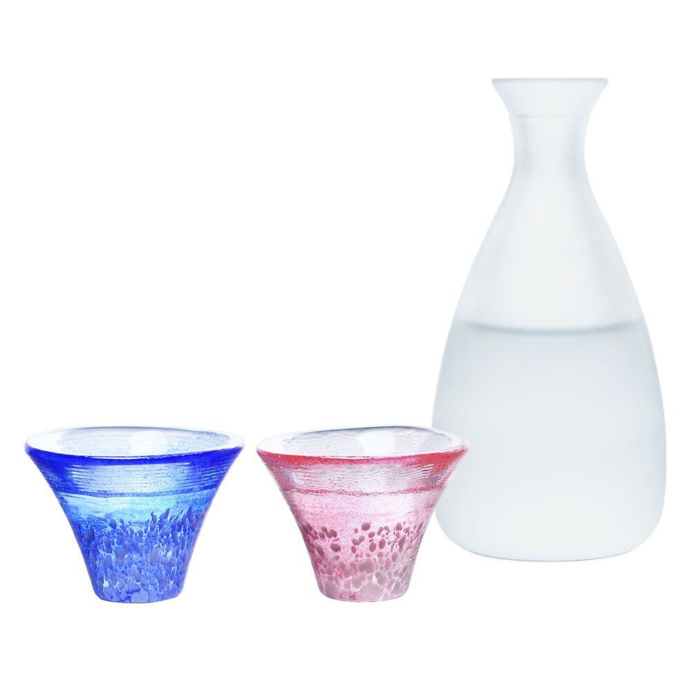 東洋佐々木ガラス 冷酒セット 招福杯 富士山 日本製 杯 35ml 徳利 270ml ブルー&レッド&ホワイト 3個セット G639-M76 徳利:直径約3.6cm/高さ約14.9cm、冷酒杯:直径約6.7cm/高さ約4.6cm