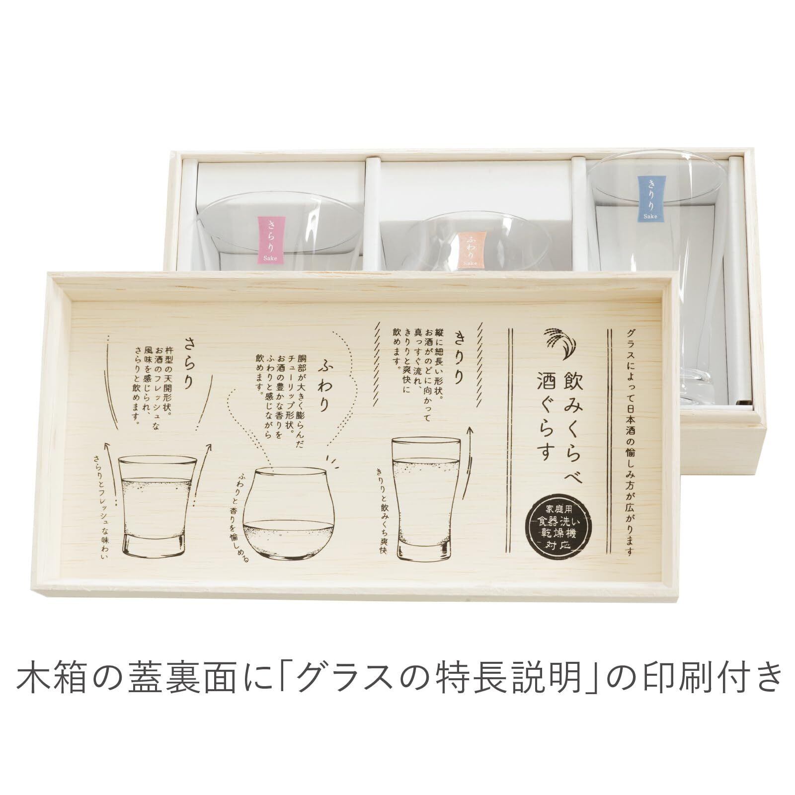 グラスによって日本酒の味わいや風味の違いを愉しめるセットです。