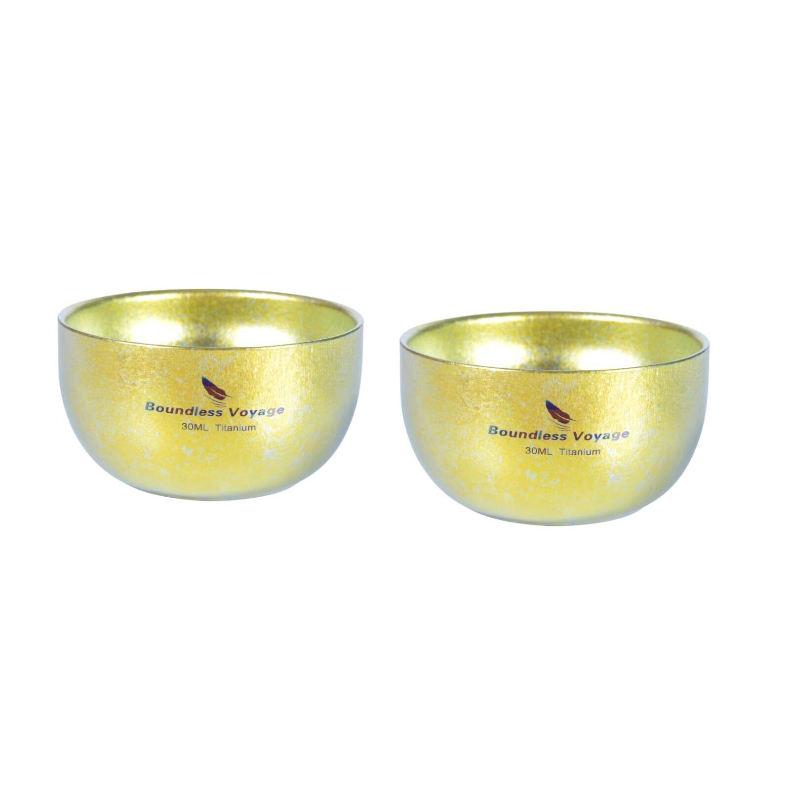Boundless Voyage チタン お猪口 ぐい呑み 二重層 キャンプ 熱燗 超軽量 耐熱 やけど防止 錆びない 【塗装なし】 ミニコップ 酒盃 ティーカップ(ゴールド(2つ))Ti3082D
