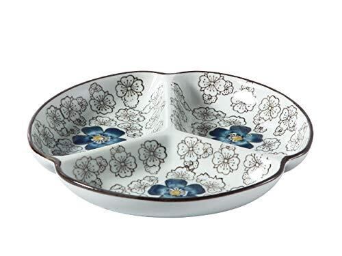 \【◆7.5号三つ仕切り皿(青い椿): おうち料亭気分を楽しむ美しい和食器!】/