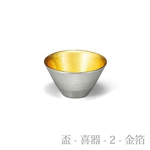 錫100%の片口-大1ケとシンプルな形の盃 - 喜器(きき) - 2の錫、金箔各1ヶのセットです。