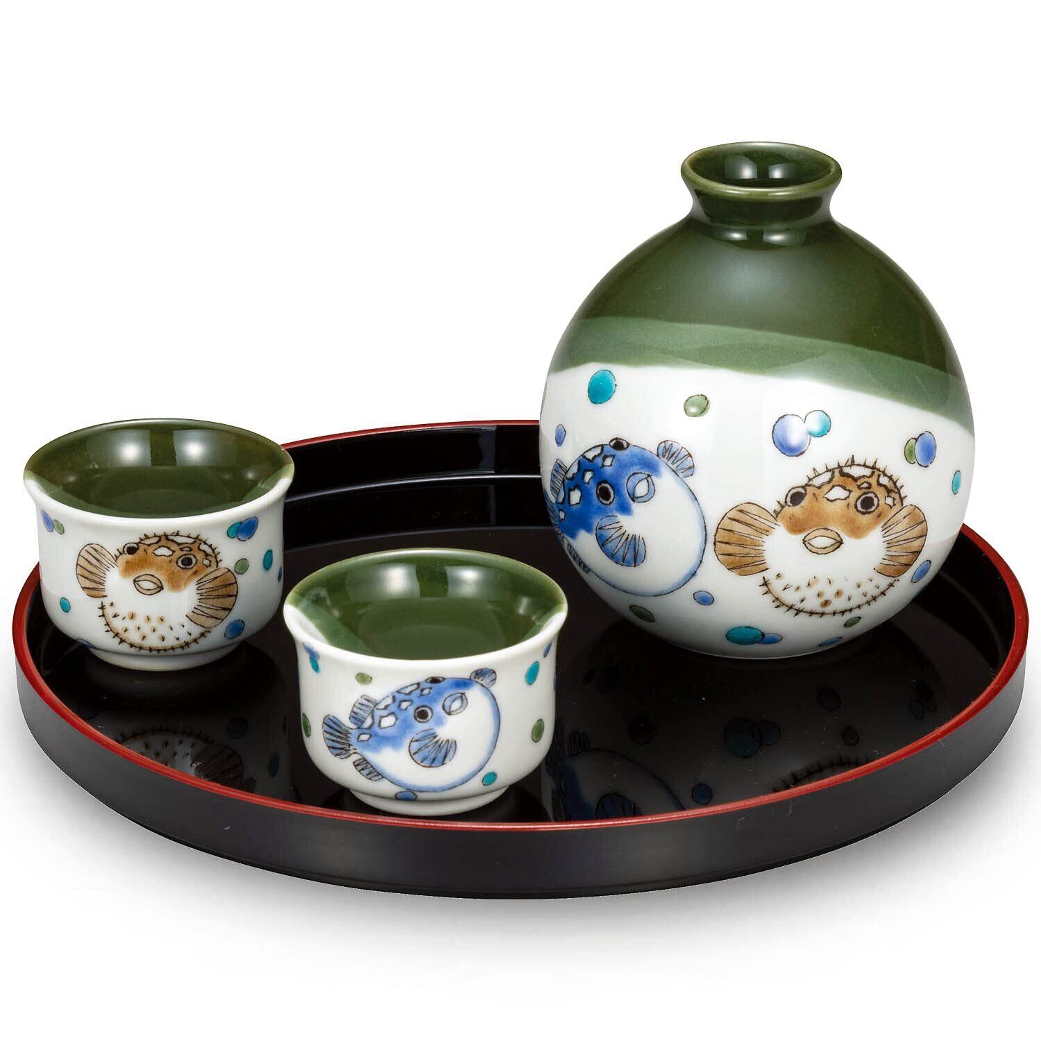 和座の蔵 おしゃれ ぐい呑み 徳利 九谷焼 晩酌 酒器 セット ふぐ・はりせんぼん お盆付き 陶器 ブランド 高級 和食器 日本酒 日本製 還暦祝い 古希祝い 喜寿祝い 誕生日 プレゼント ギフト
