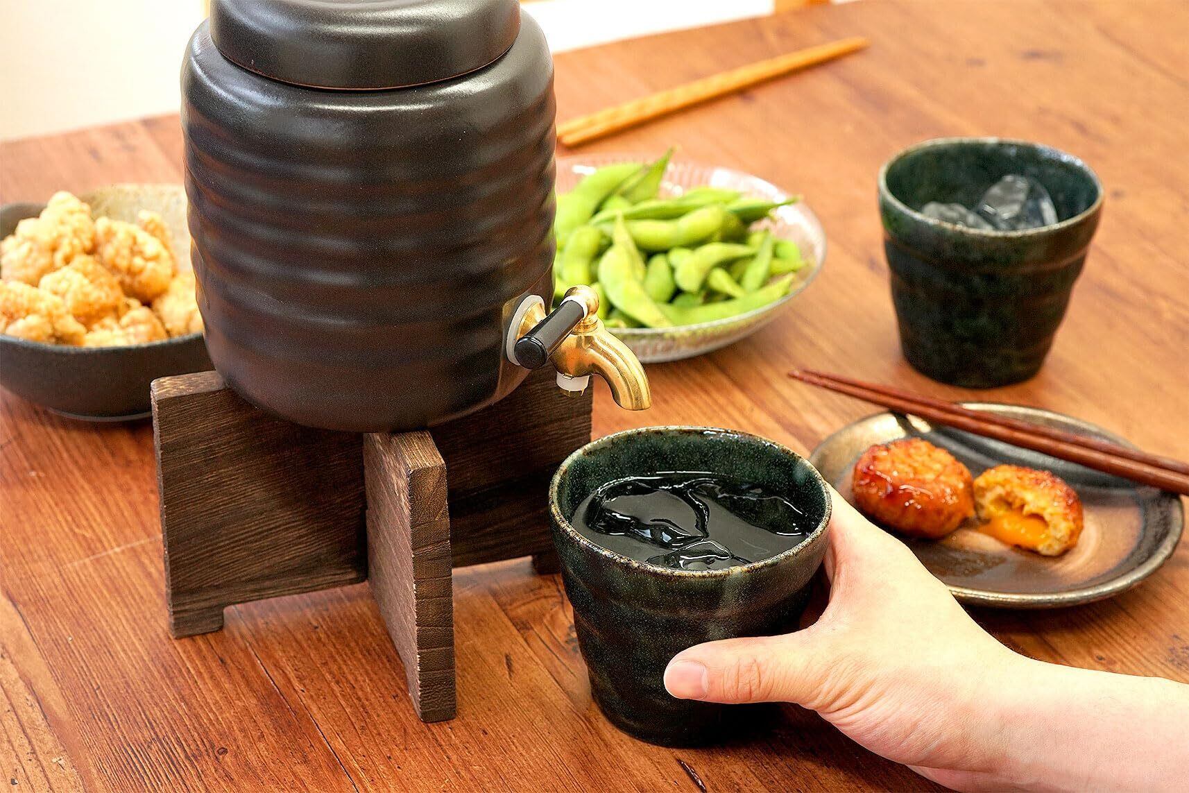 自宅にいながら、まるで居酒屋にいるような気分に――。 テーブルに置くだけで雰囲気が変わる、おしゃれな陶器製の焼酎サーバーです。 蛇口をひねれば、トクトクと音を立ててお酒が注がれる… このちょっとした“非日常感”が、自宅晩酌の時間をぐっと特別にしてくれます。 焼杉の木台に陶器のサーバーをセットすれば、和の趣あふれるインテリアとしても存在感◎ お酒好きの方へのプレゼントはもちろん、リビングやキッチンカウンターに置くだけで空間がぐっと華やかになります。 夫婦での晩酌や、友人を招いたおうち飲みにもぴったりです。 おすすめポイント おうち居酒屋気分が楽しめる陶器製焼酎サーバー 注ぐ動作が楽しい!真鍮製の蛇口付き 焼杉の木台が高級感を演出 芋焼酎・麦焼酎・日本酒・梅酒など幅広く対応 晩酌好きの方へのギフトにもおすすめ