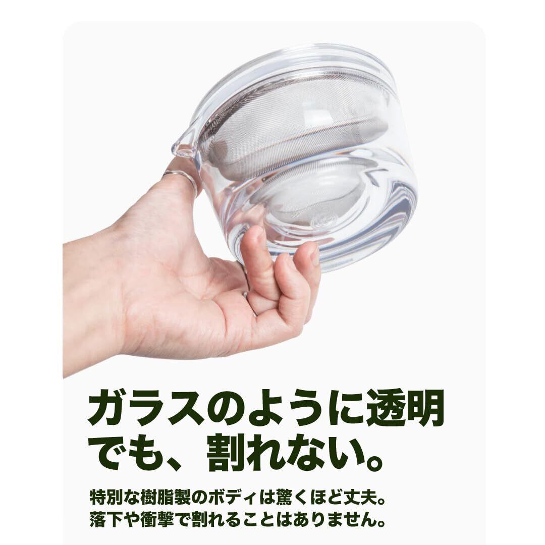 この「透明急須」は、**日本製の高品質トライタン樹脂を使用した、丈夫で美しいアイテムです!** 細部にわたる設計により、長く愛用していただける急須を実現しています。