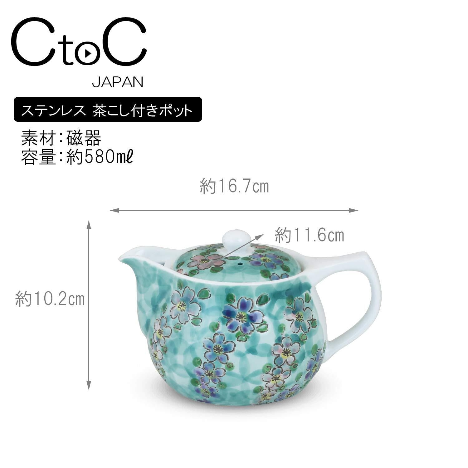 シートゥーシー ジャパン(Ctoc Japan) 急須 グリーン 580ml 急須 ポット ステンレス茶こし付 花つづり 960591